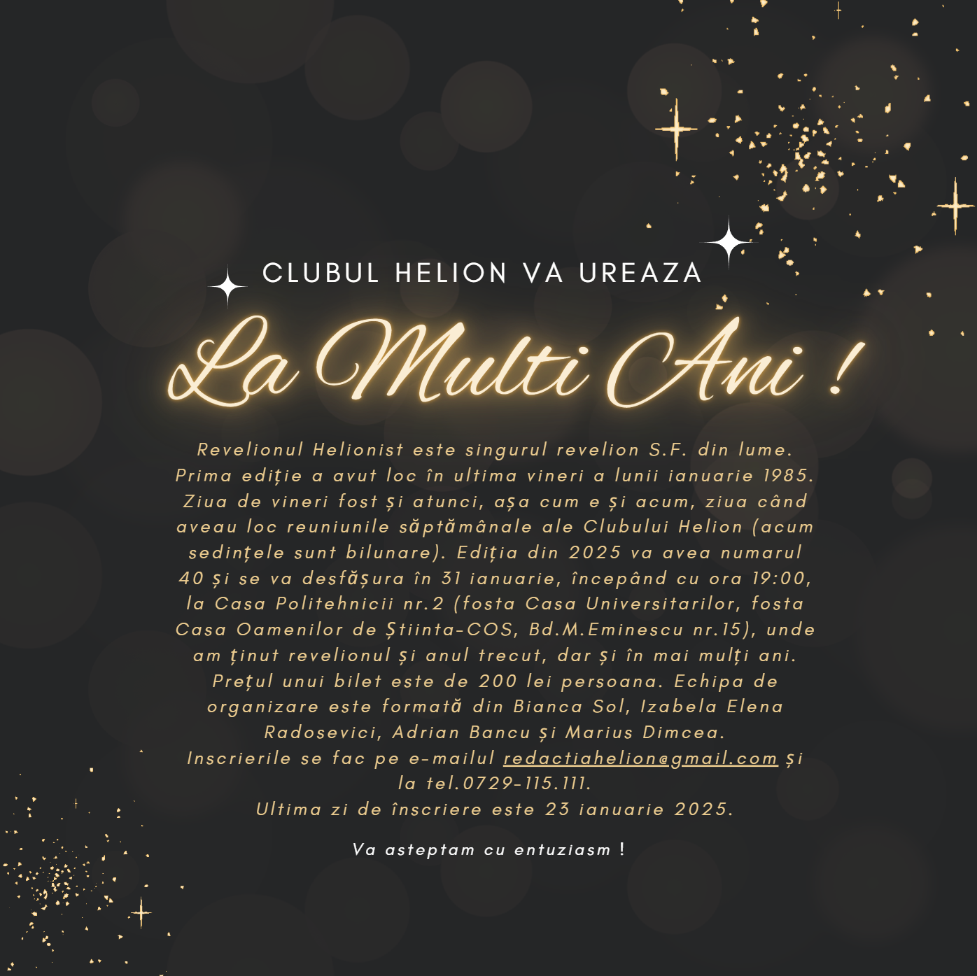 Vă așteptăm cu entuziasm !