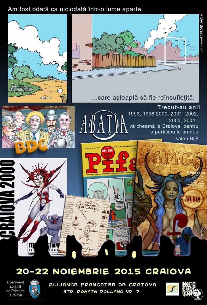 În perioada 20-22 noiembrie, a avut loc Salonul Benzii Desenate, Craiova 2015. La eveniment au participat artiști din toată țara care și-au lansat ultimele albume, au desenat cu copiii, și au participat la conferințe. Printre cei prezenți se număra: Victor Drujiniu, Mirel Dragan, Dan Ianoș (Timișoara), Adrian Barbu, Gabriel Rusu, Alexandru Popa, Oana&Maria Heller (Cluj-Napoca), Cristian Dârstar (Brasov), Francois Montier (Sibiu) Puiu Manu, Alexandru Ciubotariu, Valentin Sava, Robert Obert, Ionuț Popescu, Marius Leștaru, Alin Ivan, Tudor Popa (Bucuresti) și, invitați speciali din Serbia: Tiberiu Beka și Dragan Predic.